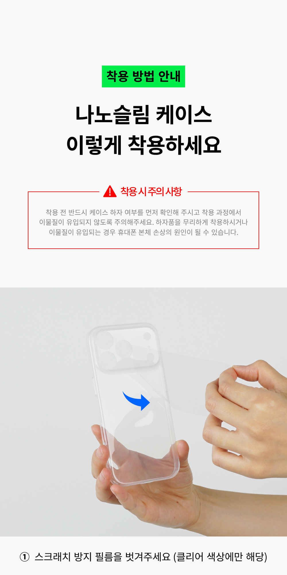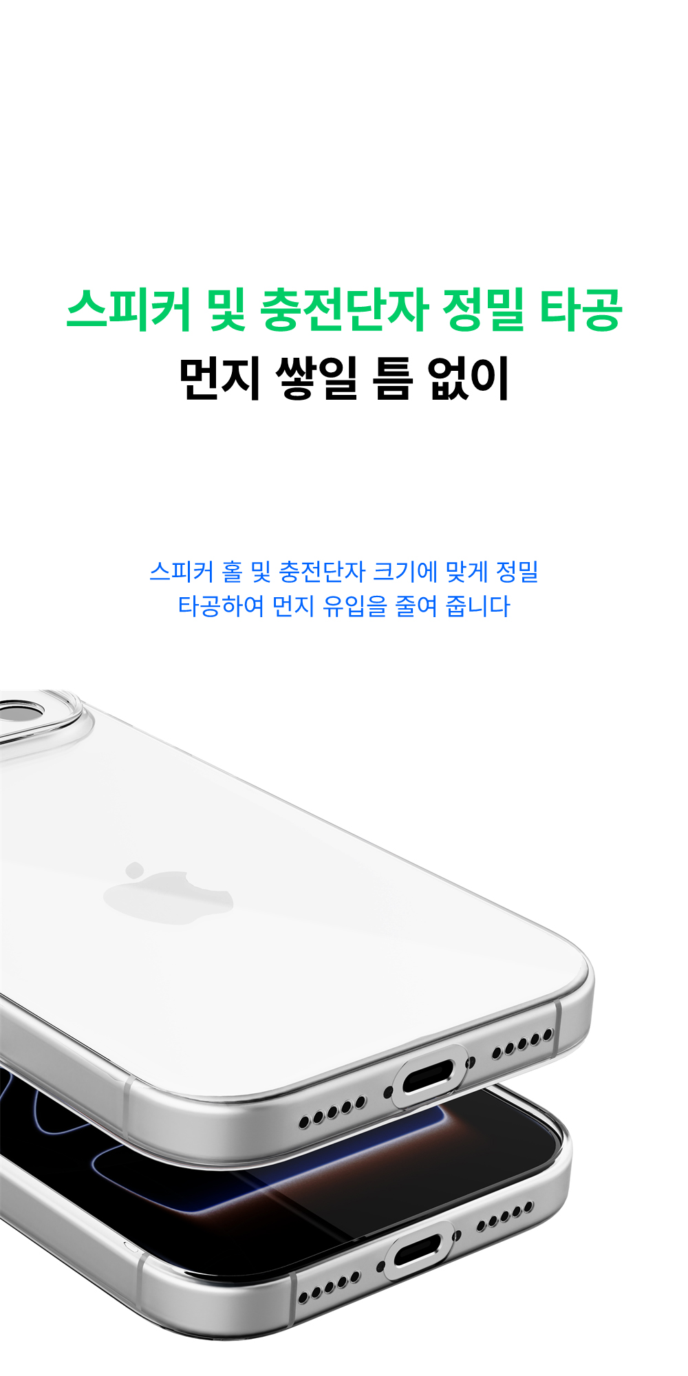 PP 폴리프레폴린 소재의 투명 케이스입니다. 투명도는 약 90%이며, 소재 특성상 변색되지 않고 유막현상이 없으며 세균번식이 적어 위생적입니다. 케이스 두께만큼 아이폰과 단차를 두고 카메라 풀커버로 설계되어 카메라와 액정을 보호합니다. 무선 및 맥세이프 충전을 지원합니다.